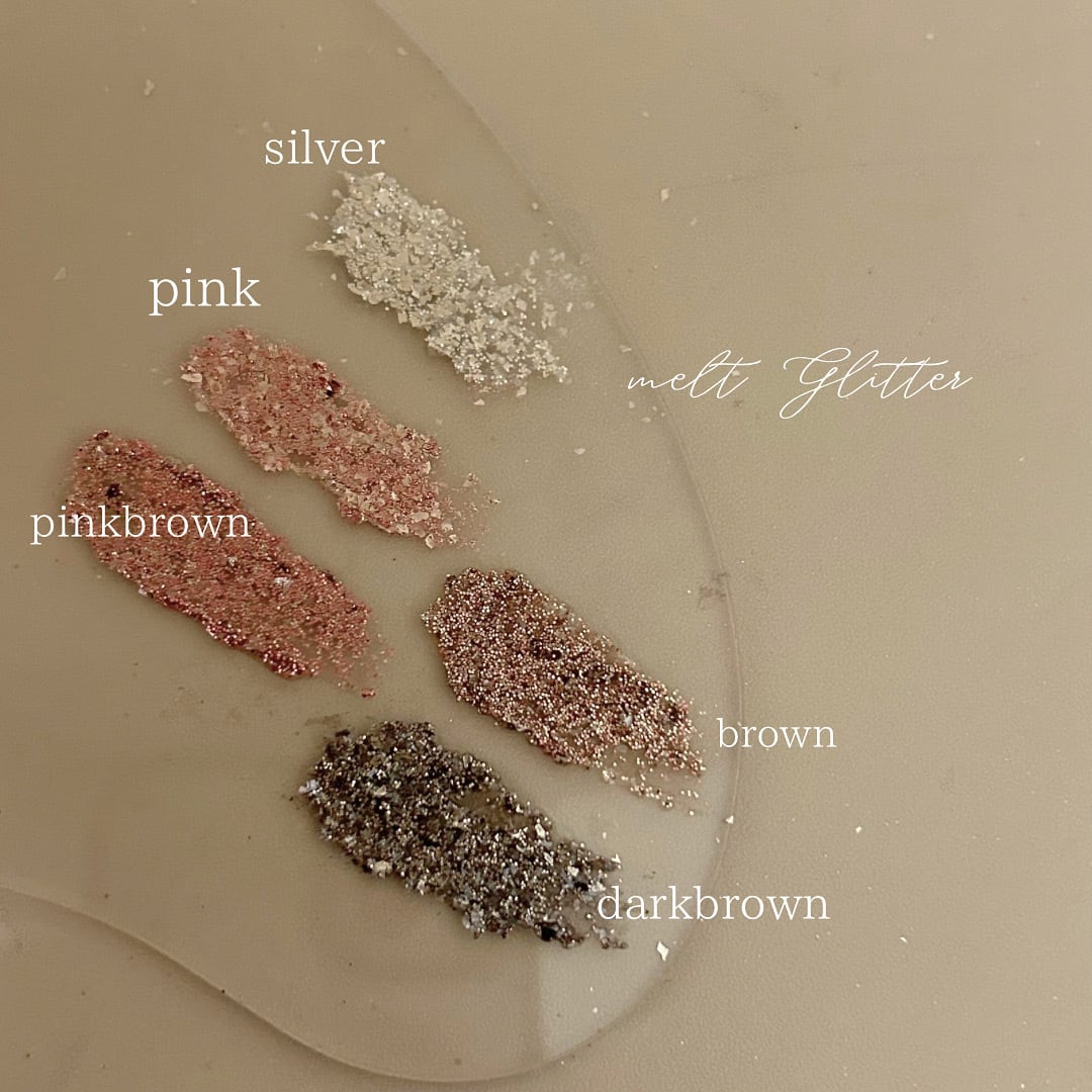 ジェルに混ぜると色味がさらに出てきます。 ニュアンスにとけるようなラメになっております。