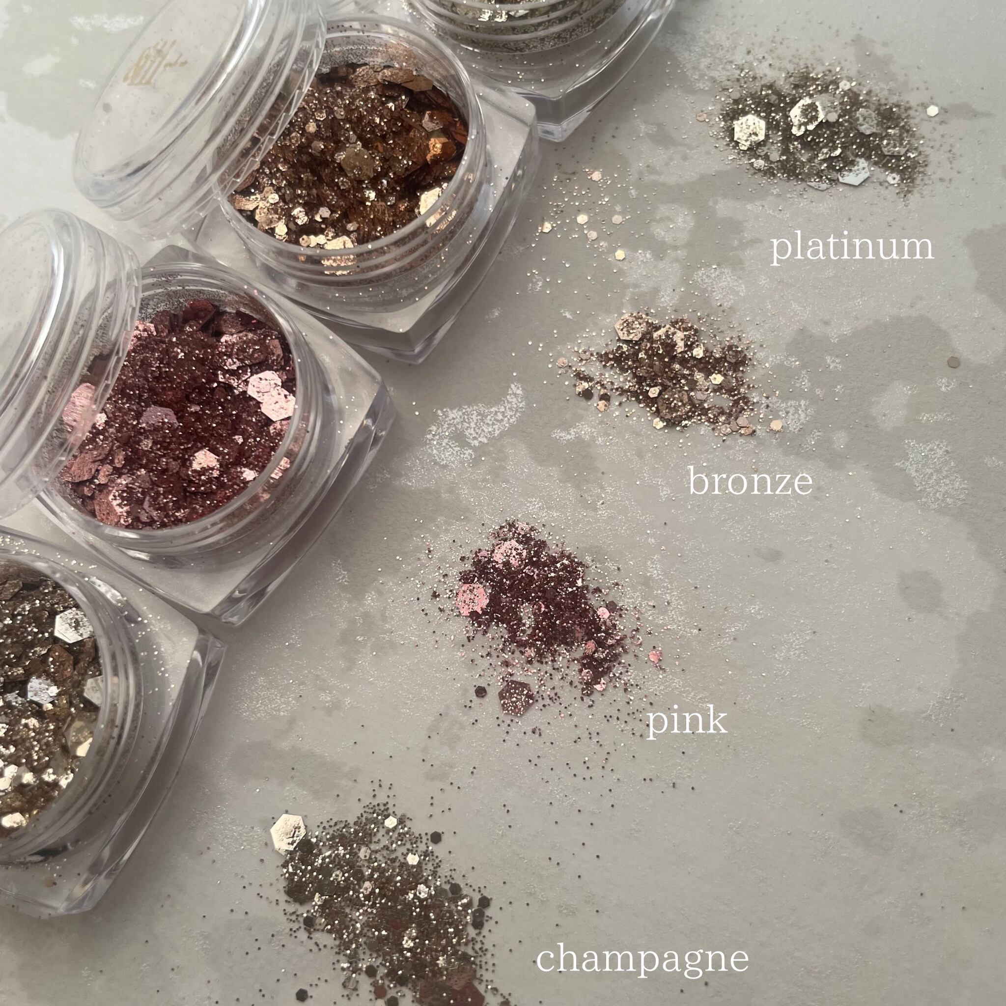 様々な大きさのグリッターを混ぜた